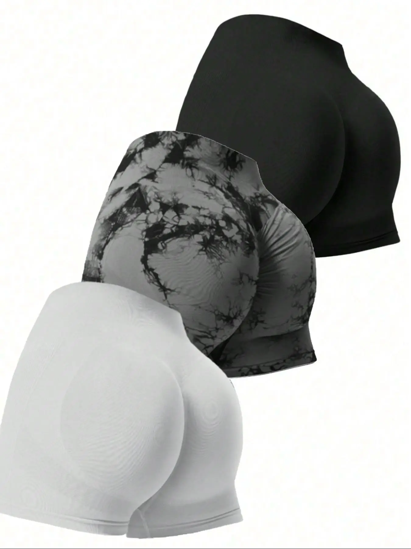 Sporty Women's Plain/Tie Dye Print Ruched High Waist Sports Shorts, Breathable Comfortable Seamless High Stretch Yoga Shorts, Ladies Sportswear for In for $14.07