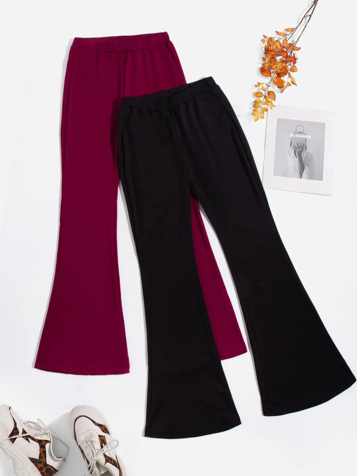 Women's Plain Color High Waist Flare Leg Pants, Casual Comfy Bell Bottom Trousers for Fall & Winter, Fashion Women's Bottoms for Daily Wear for $5.34